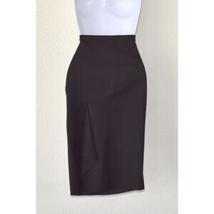 AUTHENTIC GUCCI Dark Brown Unlined Back Pleated Detail Side Zip Pencil Skirt