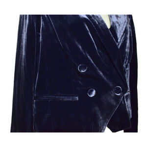C0 Auth LAGENCE Ink Blue Velvet Double Breasted Cropped Jacket Blazer Size 6