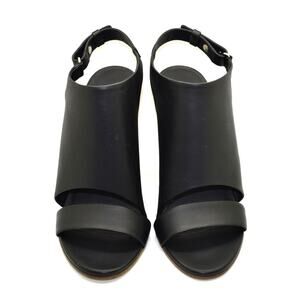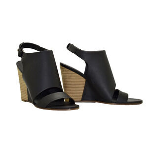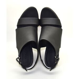C0 NEW VINCE Black Leather Open Toe Double Band High Wedge Sandals Size 8 M $425