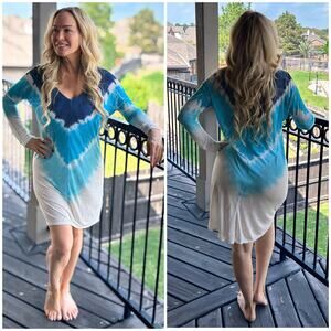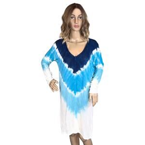 Venus Long Sleeve Lightweight V Neck Tie Dye Cover Up Dress SZ M $49