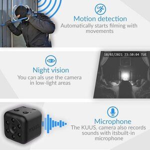 ️Spy Cam With Night Vision and Motion Detection: This mini spy camera ensures you capture clear footage, day or night, with advanced motion detection capabilities. This micro camera has it all