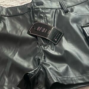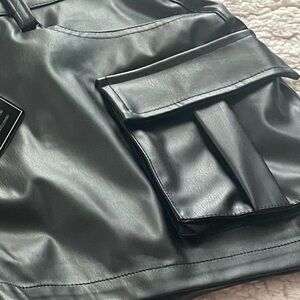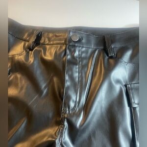 C1 Sono Large, Sporty, Streetwear Black Faux Leather cargo shorts, front zipper with silver button. Shorts are adorned with cargo pockets on the front. Belt loops for your favorite belt. NWT
