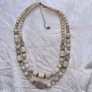 C 1946 Double Strand Tan, Gray, Pink & Gold Wooden Beaded Necklace