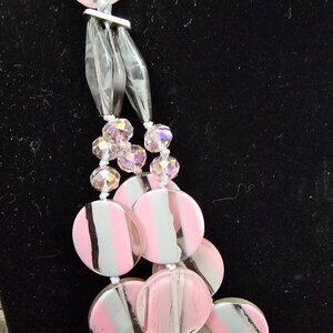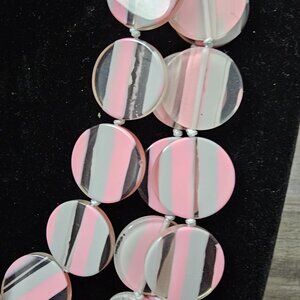 C1946 New Vintage Retro Acrylic Disc Pink & Gray Multi Strand Statement Necklace
