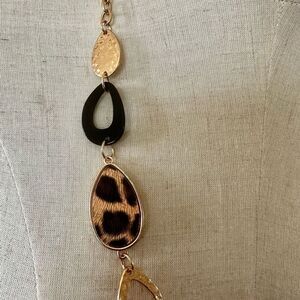 C 1946 gold tone long leopard black necklace