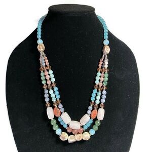 C1946 Multi Color Strands and Stones Necklace with Matching Stretch Bracelet