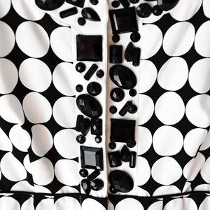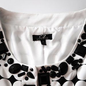 C2 STUDIO Black & White Circle Pattern Dress with Gemstones - Size Small