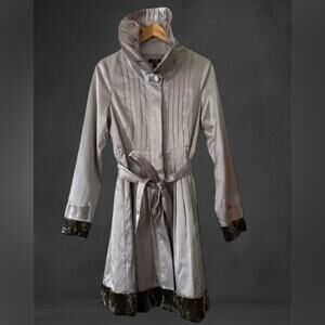 C2 Studio Gray Velvet Trim Trench Coat Medium