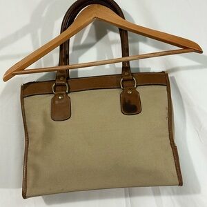 Authentic vintage Ghurka No. 9 “The Runabout” bag from the 1980 Marley Hodgson era. Serial C2011 places this piece among the earliest production runs from Ghurka’s original Norwalk, Connecticut workshop. Features tan canvas with thick leather trim, brass hardware, rolled leather handles, front flap pocket, and zip-top closure. A true heritage travel or commuter bag, built to last and rich with patina and history.