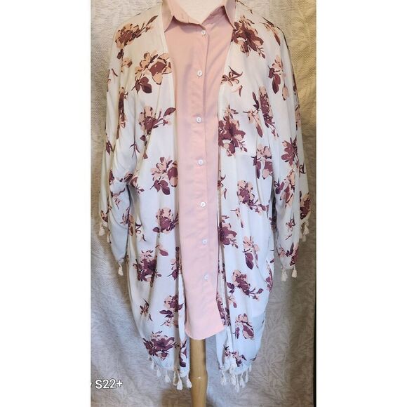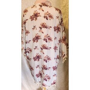 ▪︎DESCRIPTION: One size fits all floral kimono with tassel trim around the sleeves and bottom hem.