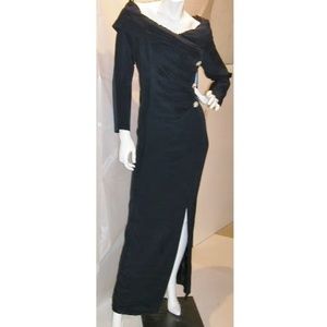 @afashionartist Size 18>>> B47 W38 H48 Crepe Polyester-Fully Lined The model is 6 ft, often designer garments will require shortening. Free free to ask additional questions.