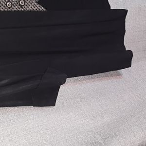 Black with black and gray inlaid vest and handkerchief. 65%rayon, 36%acetate. Made in U.S.A.. Dry clean only