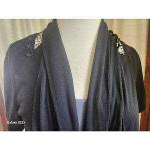 C39 Ever Blue knit open front cardigan, black with lace inset in back