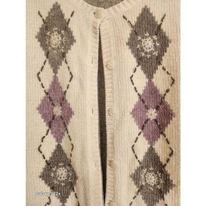 ▪︎DESCRIPTION: Super soft button-up sweater. Argyle pattern in purple and gray with cream embroidered flowers