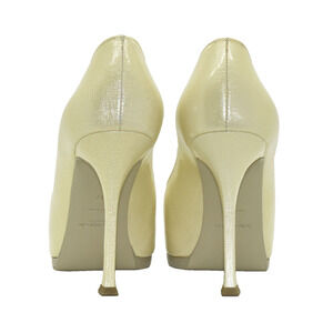 AUTHENTIC YVES SAINT LAURENT Tribtoo Cream Paille Patent Covered Platform Stiletto Heel Pumps