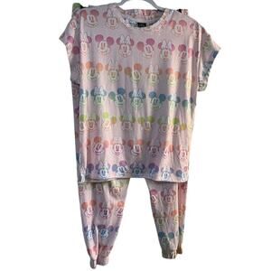 C8 Disney Mickey Minnie Mouse 2 piece jogger pink patterned pajamas L 12/14 NWOT