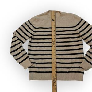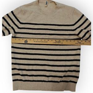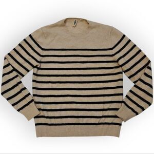 C/89men 100% Cashmere Cream and Black Crewneck Sweater Stripes size M