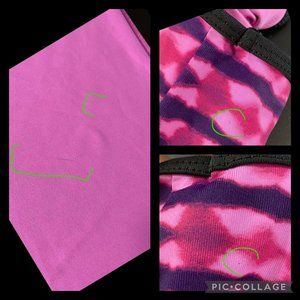 Built in bra; Pink staining on bottom of built in bra (see Pics #9-10).