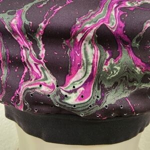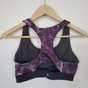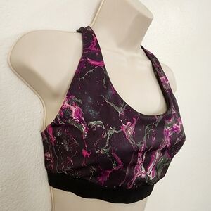 Dark purple and green galaxy print sports bra. No padding, No size tag, but is a medium. Please see measurements. EUC.