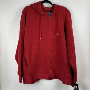 Condition is new with tags.Super warm and cozy full zip track jacket. Long sleeve with a Sherpa fleece like exterior. Front slit pockets. Branded cuffs and hemline along with front drawstring will keep everything secure. Hood provides complete coverage
