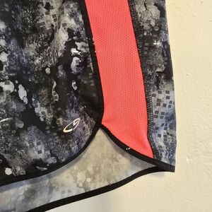 Stylish athletic shorts with vibrant pink side panels. Comfortable fit. Ideal for workouts.