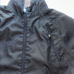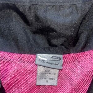 Sleek black utility jacket featuring pink accents. Perfect for versatile wear.