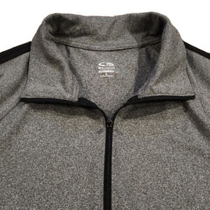 Gray with black trim C9 by Champion with DuoDry athletic zip-up lightweight jacket. Size Large. Body - 88% Polyester, 12% Spandex, Binding - 90% Polyester, 10% Spandex. In excellent condition.