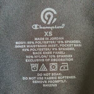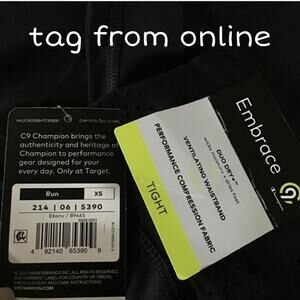 C9 by Champion Embrace performance compression legging sz XS, tight fit * wide waistband with perforated sides for breathability * draw strings * zip waist pocket * mesh panel in the back * capri length * color: black * 85% polyester/15% spandex * machine wash & dry * no hole, no stain, great pre-owned condition # 1749, 7 oz