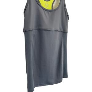 C9 by Champion Fitted Sports Tank Grey with Neon Yellow Built-in Bra Small