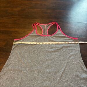 Gray Racerback activewear tank top from target brand c9 by champion. Hot Pink accents along hems. Stretchy and lightweight material.