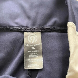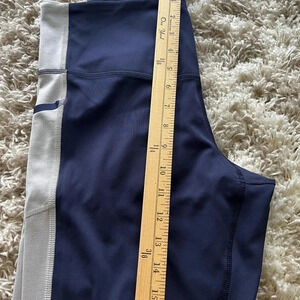 C9 color block leggings, size XL. Dark blue/ light grey/ orange/ geometric color blocking. In excellent condition, two side pockets. 77% polyester, 23% spandex