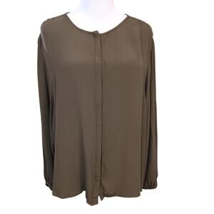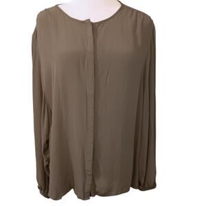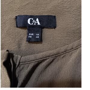 C&A (European) Blouse Top Olive Green Peasant Lagenlook Minimalist Flowy XL/46