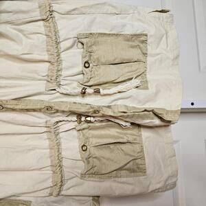 Discover the perfect blend of style and functionality with this C.A. Sport Collector lightweight utility jacket/dress. This versatile piece features a unique patchwork design with four spacious pockets, making it ideal for everyday wear. Crafted with comfort in mind, the adjustable drawstring waist ensures a customizable fit, while the button-down front adds to its casual charm. Perfect for layering, it easily complements any outfit. Stay warm and stylish this season!