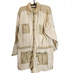 Discover the perfect blend of style and functionality with this C.A. Sport Collector lightweight utility jacket/dress. This versatile piece features a unique patchwork design with four spacious pockets, making it ideal for everyday wear. Crafted with comfort in mind, the adjustable drawstring waist ensures a customizable fit, while the button-down front adds to its casual charm. Perfect for layering, it easily complements any outfit. Stay warm and stylish this season!