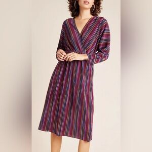 CAARA Gillian Pleated Midi Dress Multi Stripe