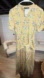 Yellow printed crepe (100% Polyester). Hourglass. Short sleeves. V-neckline. Front botton closure.