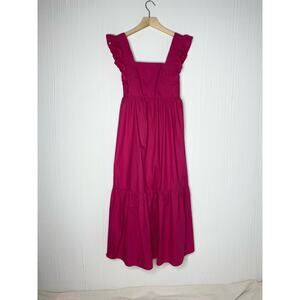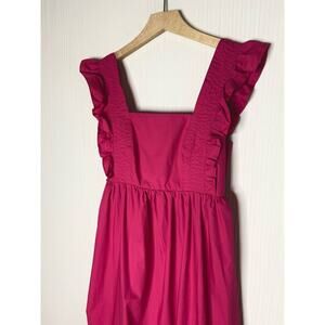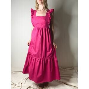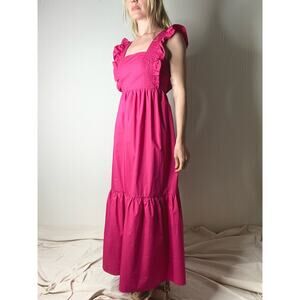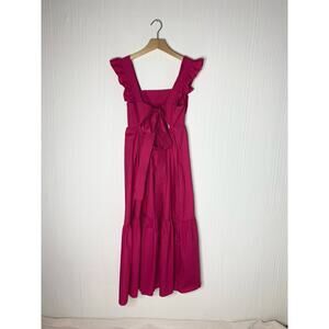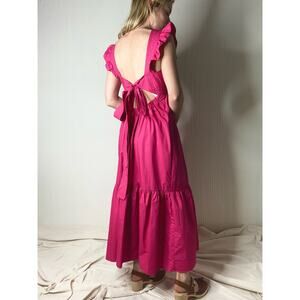 CAARA Ruffle Open Tie Bow Back Cotton Magenta Prairie Maxi Dress NWT US MEDIUM