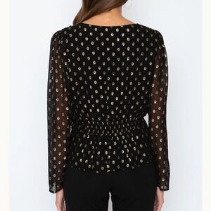CABALLERO ABY TOP IN BLACK GOLD DOT Sheer Sleeve Wrap Look Sz S NEW