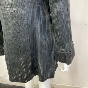 Caban Romantic Black 3D Flowers And Studs Laser Cut Leather Jacket In Size Small