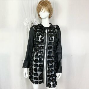 CABAN ROMANTIC Black 3D Flowers & Studs Laser Cut Leather Jacket S