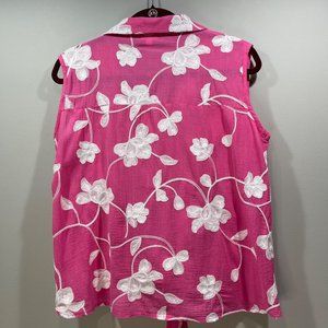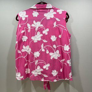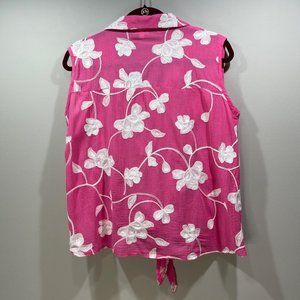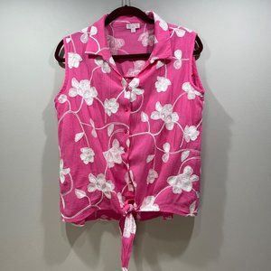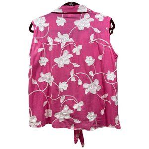 CABANA CAY Women's Embroidered Floral Sleeveless Top Tank Tie Waist Pink Size L