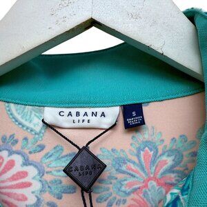 CABANA LIFE Womens Golf Top Small Pink Tropical Print 1/4 Zip Long Sleeve NWT