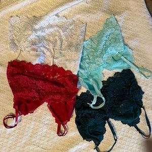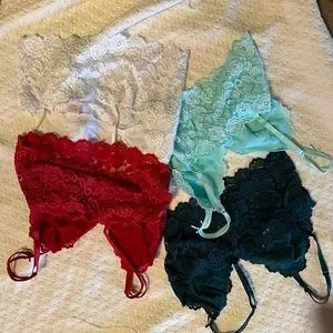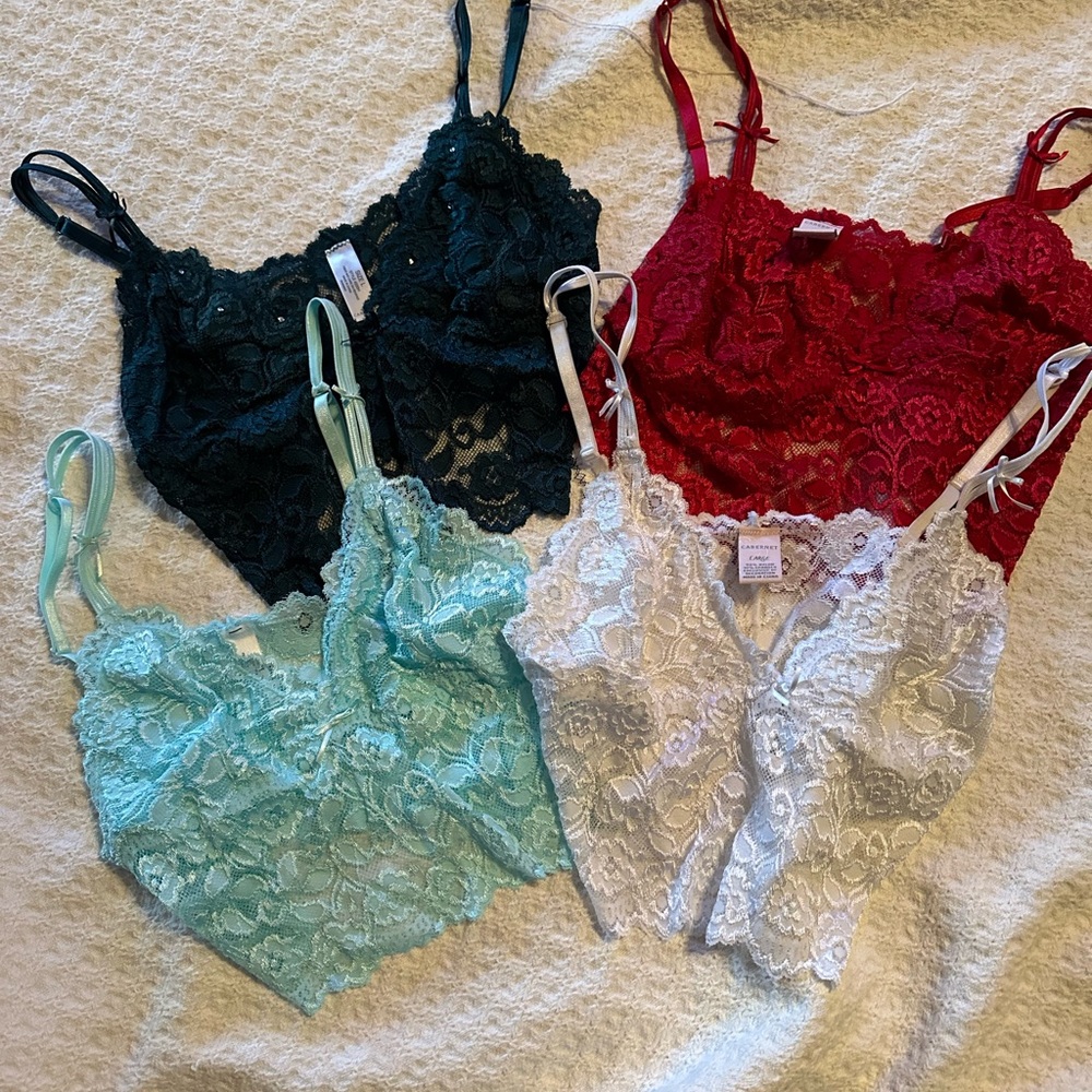 Nothing makes a lady feel more sexy than beautiful lingerie by Cabernet. All four for one price. These tops are new but without tags.