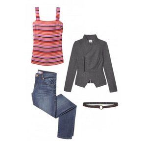 CABI #3448 Red Striped Banded Cami Tank Top sz M