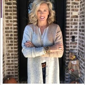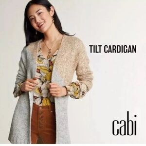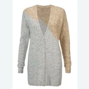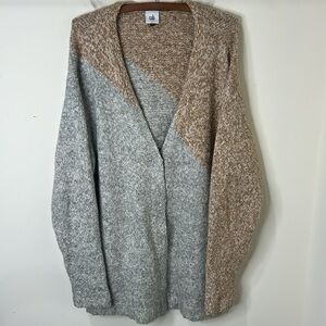 CABI 3886 Tilt Diagonal Colorblock Cardigan Sweater Gray Tan Marled Size Large