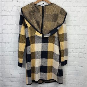 CABI 4229 Hooded Navy Yellow White Plaid Sweater Coat size small