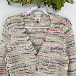 CABI #4277 Cloud Cardigan M Pastel Stripe V- Neck Cardigan Sweater