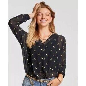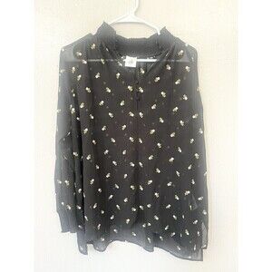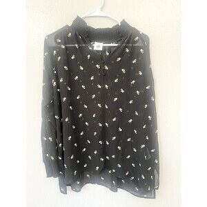CABI #5338 Black Sheer Floral Embroiderd 3/4 Sleeve High Neck Top SIZE Small