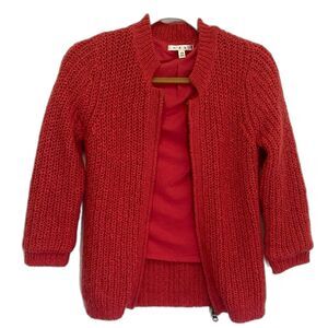Add a pop of color to your wardrobe with this CAbi cardigan sweater. The medium knit style and wool/mohair blend fabric make it perfect for fall and winter. The rosy red color is solid and the 3/4 sleeve length and crew neckline make it suitable for work and casual occasions. The sweater features a full double zip and is collarless, while the lining adds an extra layer of warmth and comfort.