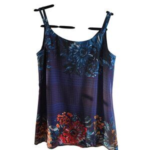 CABI ARTIST CAMI SIZE MEDIUM TANK TOP BLUE MAROON FLORAL SLEEVELESS LINED